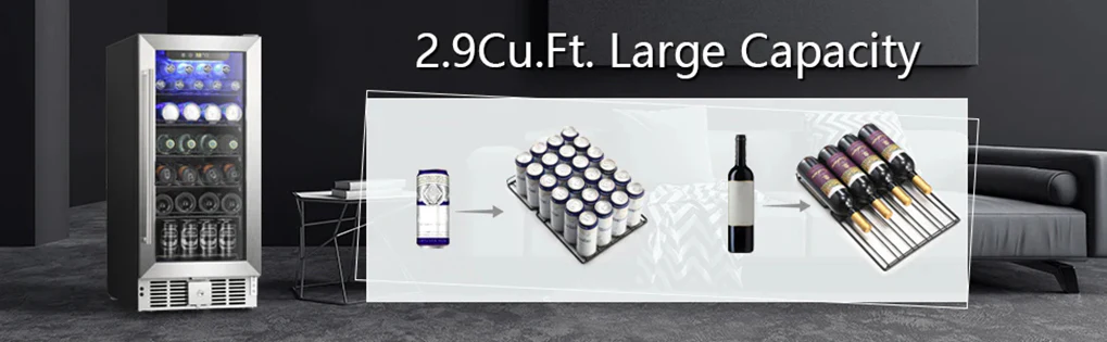 Adaptive Storage: With 2.9 cu.ft capacity, it efficiently stores wine horizontally alongside cans—preserving flavor without compromise.
